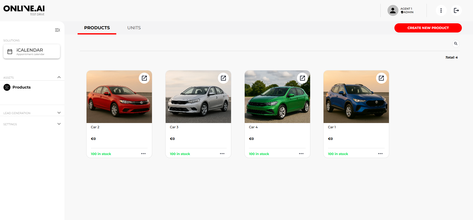 This section will show the products (vehicles) that can be booked for test drive appointments. Each product (vehicle) file is enriched with specific information about the models and the actual cars available. Further details about this section are provided in Chapter “4. Steroids” of this manual.