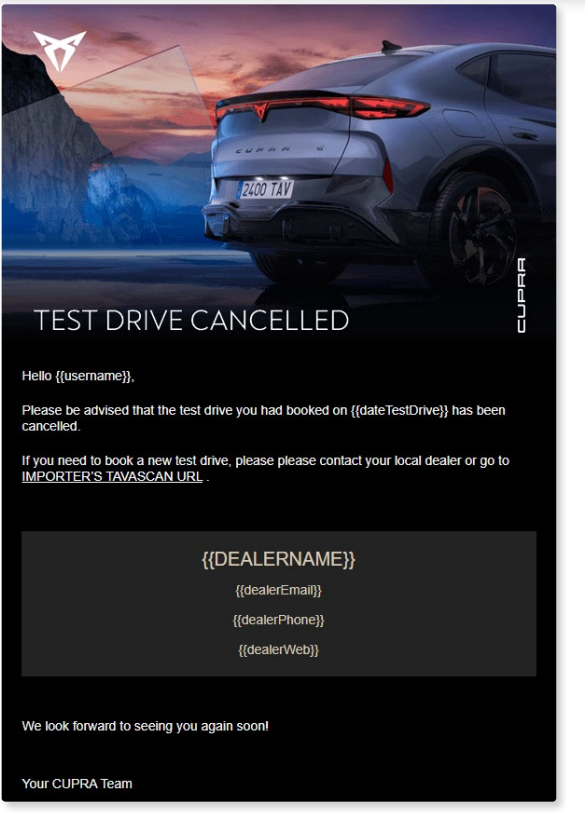 As good practice, we recommend that the CUPRA Master call the end user to notify them of the booking cancellation and to inform them that they will receive a cancellation confirmation e-mail.