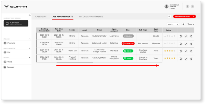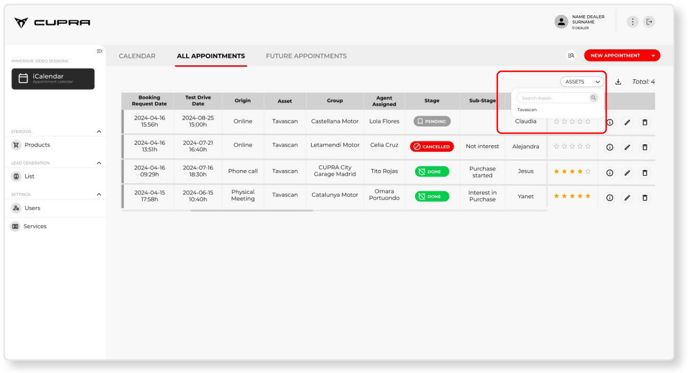 Given that there will only be one CUPRA Master during the pilot programme, the dealership will only see a single option in the “Agent” filter.