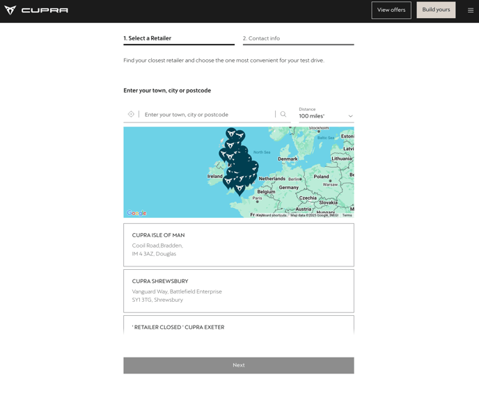 Once the vehicle has been selected, the user will add their postcode and the nearest available dealers will automatically appear so that they can select the dealer that best suits their needs.