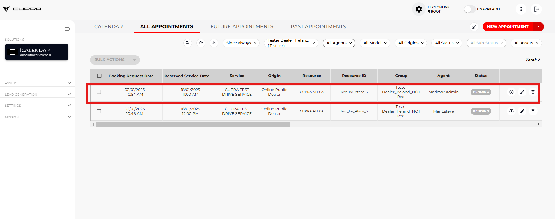 In this case, the CUPRA Master does not need to take any action. The booking will be automatically reflected in his calendar, in the table view of ‘All appointments’ and ‘Future appointments’. Additionally, the CUPRA Master will receive an email notification about the new booking and other reminders when the booking is coming up.