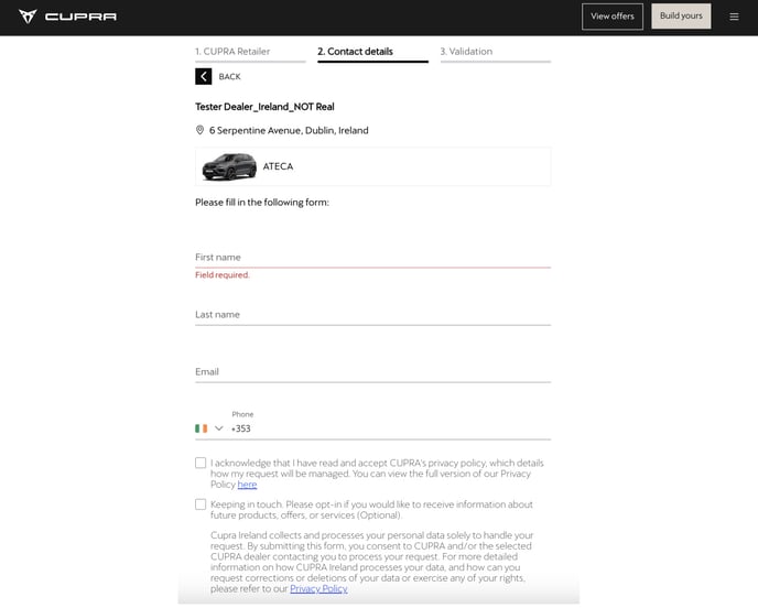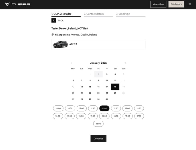 In this section you can see the whole process that an end user/potential customer goes through to book a Test Drive appointment with a CUPRA Master.