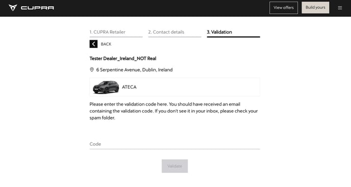 They will add their details to be able to book the date for the Test Drive and add the code that has been sent to the email to validate and confirm it.