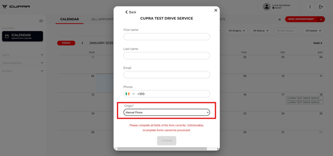 In this case, the call centre operator will be able to make the booking directly from the Test Drive booking platform. In this case, it is important that the origin is indicated as ‘Telephone call’ so that the analytics can later show from where this Test Drive has arrived.