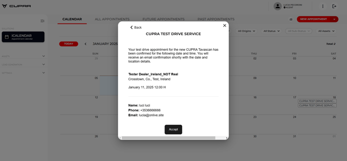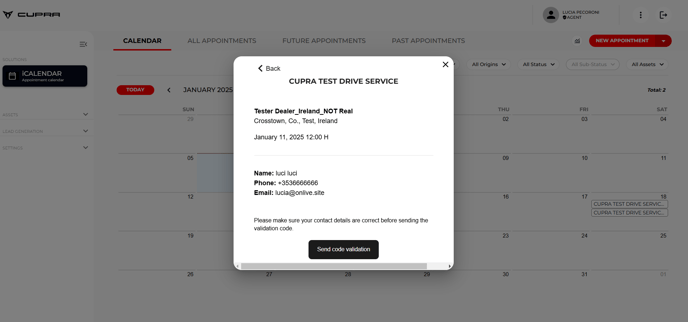Let's imagine that a user who is being attended by a CUPRA call centre operator wants to make a Test Drive reservation.