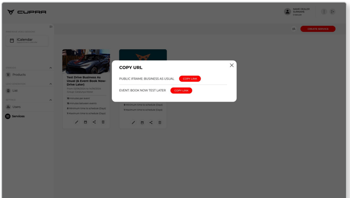 - A pop-up will display two URLs. Use the URL for “Event: BOOK NOW, TEST LATER.”
