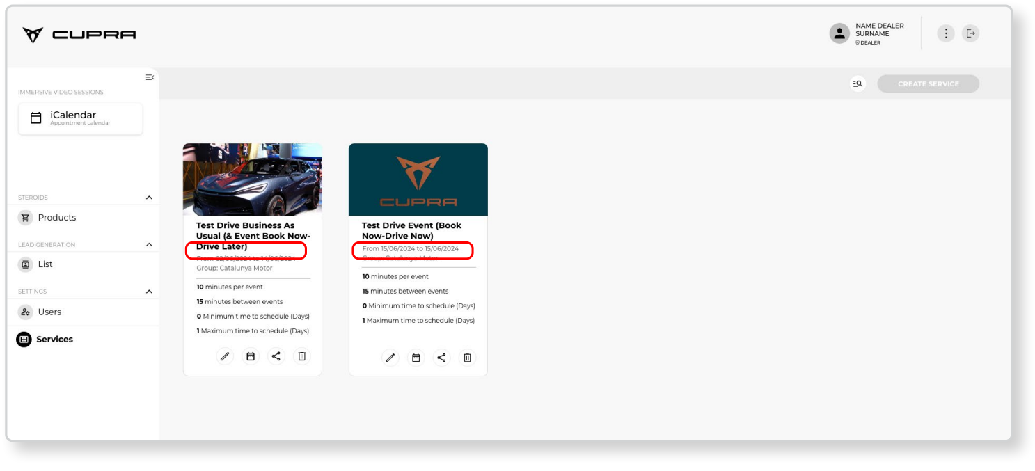 The CUPRA Master does not have permission during the pilot programme to change the test drive service availability dates from the ranges set for the initial project because any unilateral change that does not consider the other roadshow dealerships could lead to overbooking.