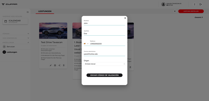 3. Anschließend werden alle Daten des Endbenutzers, der die Probefahrt planen möchte, ausgefüllt.