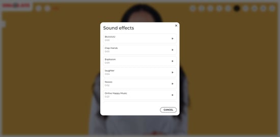 - Efectos especiales: Añada efectos de sonido de fondo a los eventos (música, aplausos, risas, cuentas atrás, etc.).