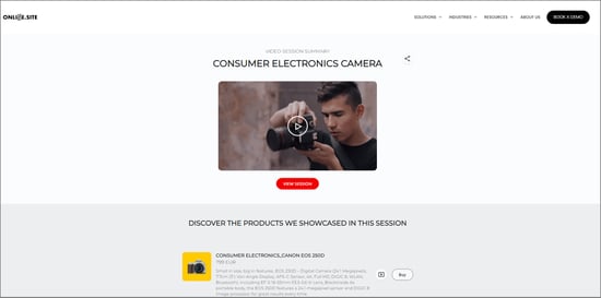 - Página de resumen del evento: Una vez finalizado un evento o creado un vídeo shoppable, puedes enviar a tus usuarios una página de resumen en la que podrán ver el vídeo, así como los elementos mostrados en pantalla, como productos, resultados de juegos y encuestas o imágenes para descargar. (Ejemplo)