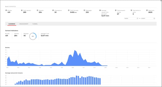 - Analítica: Podrá visualizar el comportamiento de la audiencia minuto a minuto tanto en el shoppable como en directo.