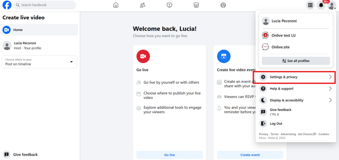 How do I connect Facebook with onlive to perform the liveshopping stream?