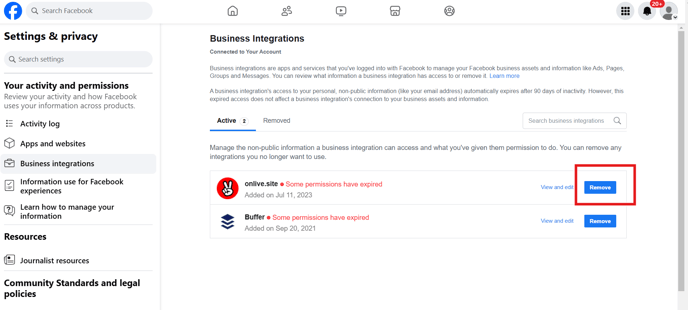 Disconnessione dall'account Facebook:
