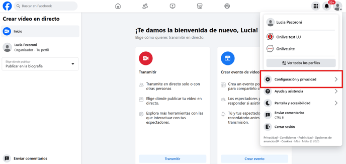 ¿Cómo conecto Facebook con onlive para realizar el restream del liveshopping?