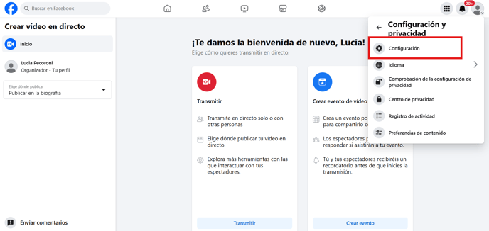 En este caso se hace una conexión directa con Facebook por lo que se conectará tu cuenta personal y las páginas creadas a través de esa cuenta. Si no eres creador de las páginas no podrás emitir el contenido en ellas y deberás ir por la opción 2.