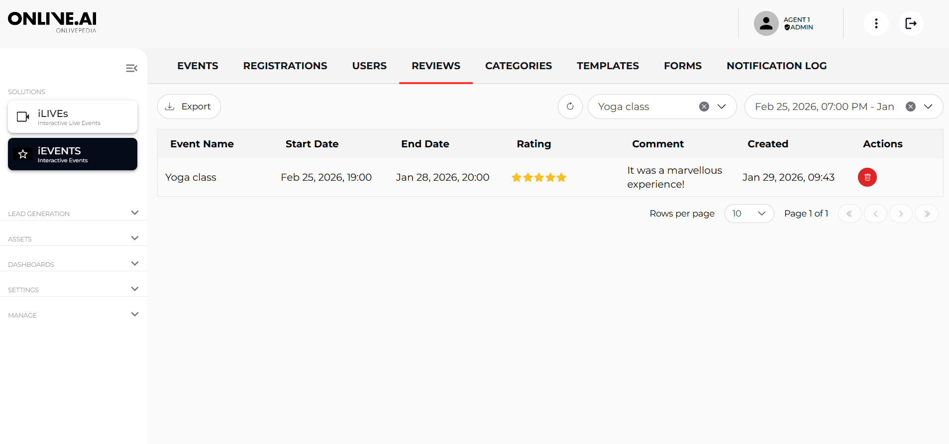 In this section, you can view the comments and ratings that users have provided about their experience at each event.