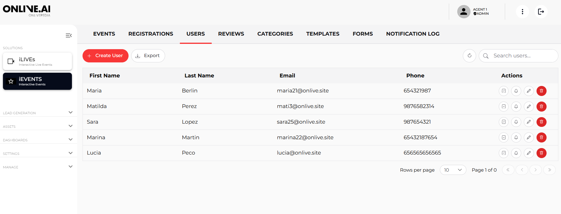 In this section, you can view the unique users or leads generated through event registrations.